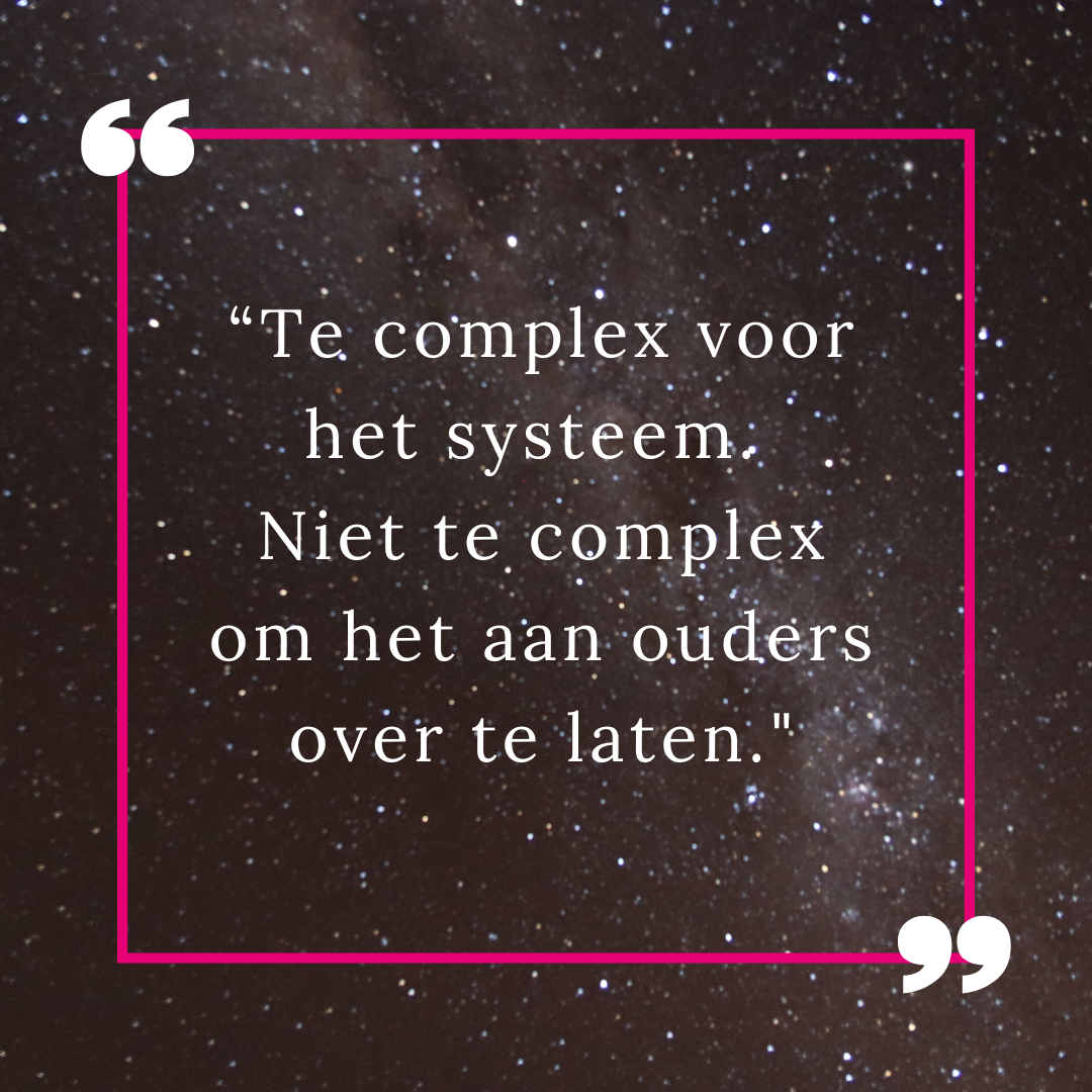 Te complex voor het systeem, maar blijkbaar niet te complex om het aan ouders over te laten.