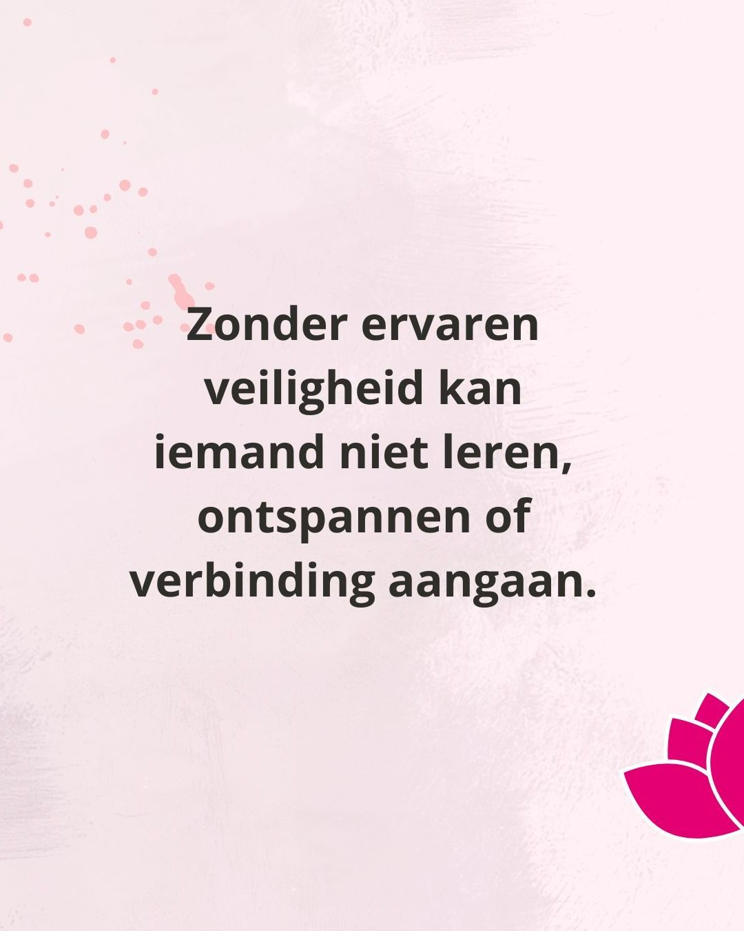 Zonder deze basis blijft het zenuwstelsel in overlevingsstand. En als iemand zich onveilig voelt, of niet weet wat er komt, lukt het simpelweg niet om te leren, te verbinden of te ontwikkelen.