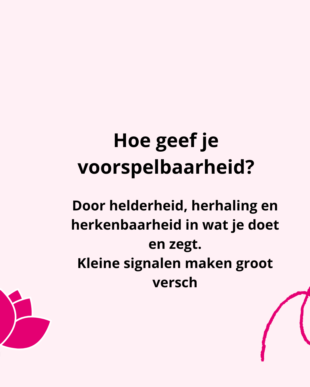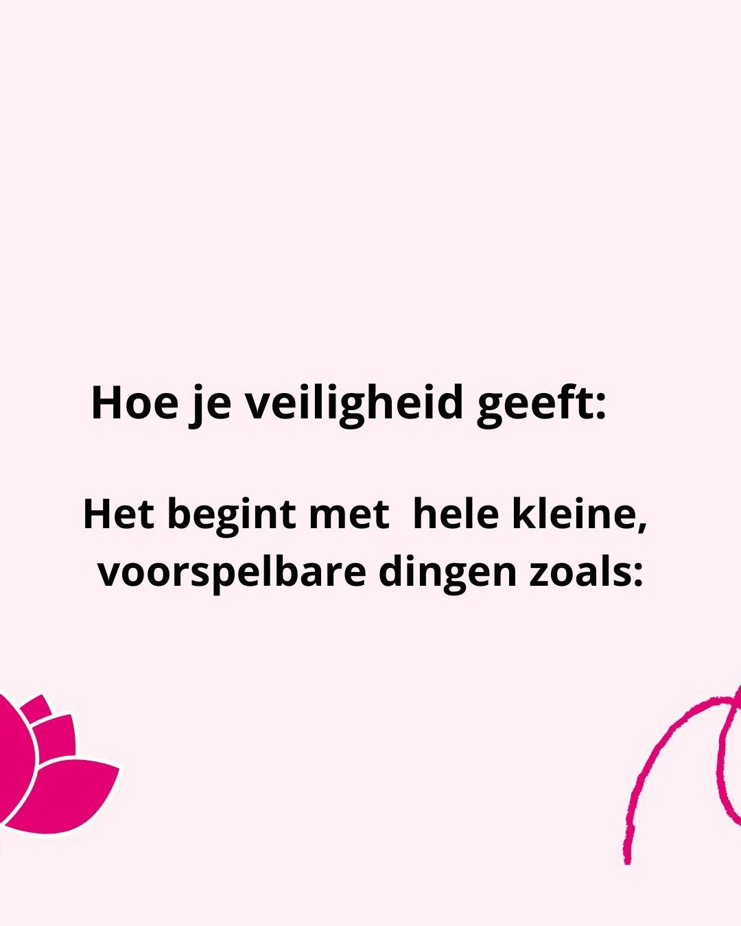 š In drie carrousels deel ik praktische voorbeelden van hoe je veiligheid, vertrouwen en voorspelbaarheid kunt bieden. Zichtbaar in kleine, dagelijkse acties.