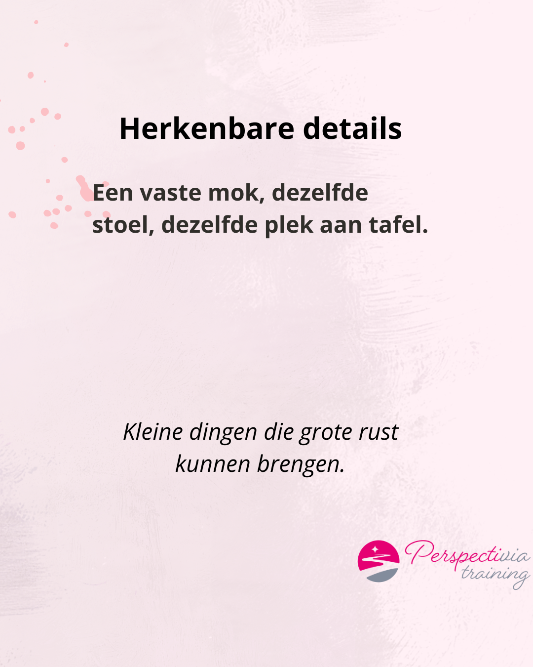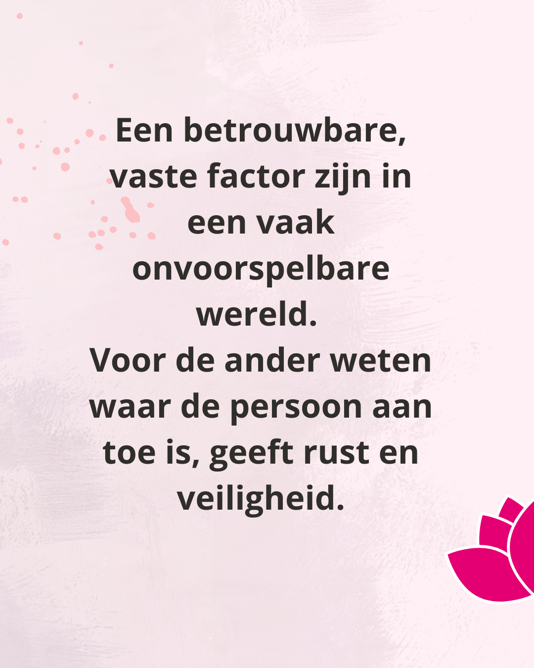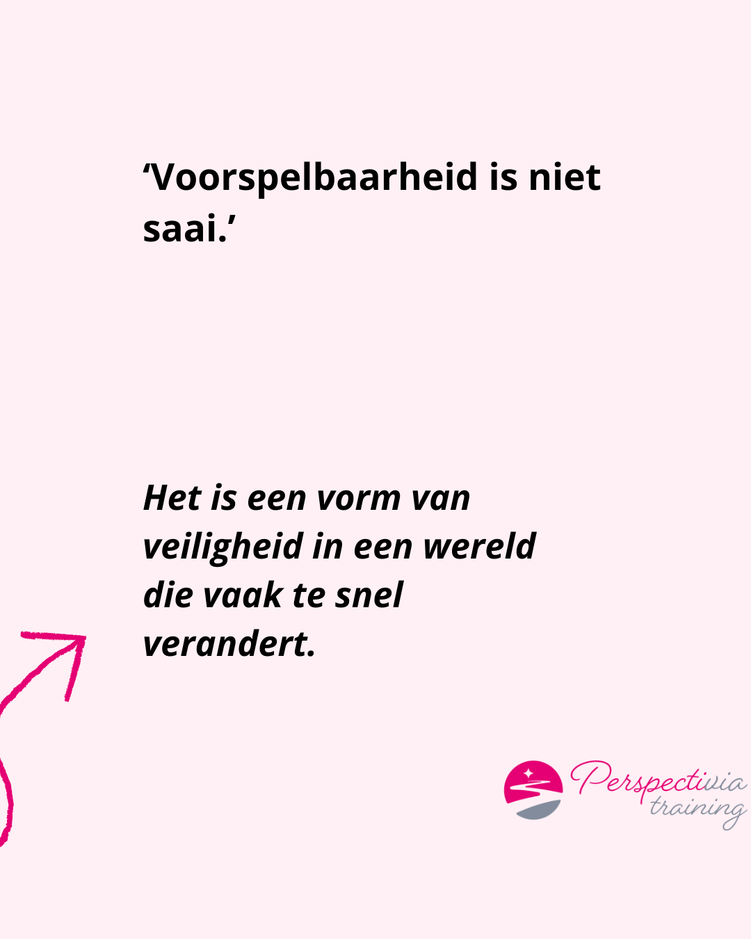 Voorspelbaarheid geeft rust. Het helpt als de wereld een beetje te volgen is: vaste gezichten, duidelijke afspraken, een herkenbare structuur. Geen verrassingen, maar duidelijkheid over wat er komt.